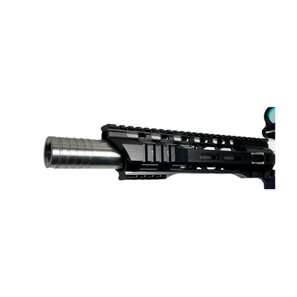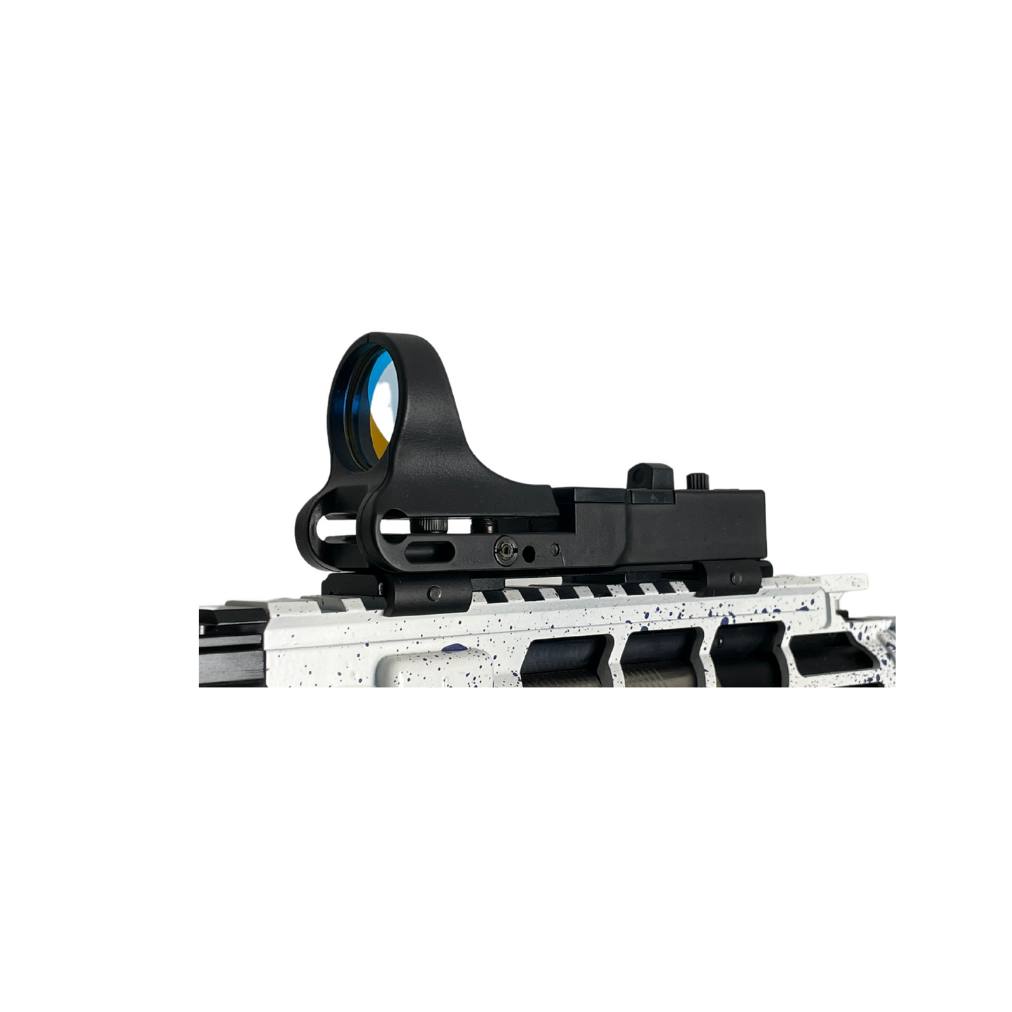This is the one and only "Aquarius" GBU custom rifle. A very unique and rare build that features the GBU custom cut-out receiver with a beautiful in-house custom paint design. This blaster is nothing short than perfect with an insane aesthetic look and shooting power that will have your mates scared to be on the opposite team. Sporting a Shark 10" metal hand-guard, C-more sight and a full metal construction the custom "Aquarius" is definitely the blaster you need in your armoury.
