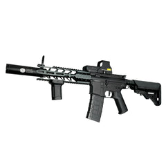 Unleash the power of the "Front Liner" Custom, a formidable fusion of aesthetics and performance. Dressed in a sleek black on black color scheme and equipped with stage 2 modifications, it stands ready for competition with unmatched precision and power. Beyond its high-performance capabilities, its aggressive appearance ensures it's not just a top-tier gel blaster, but also a force to be reckoned with on the field.