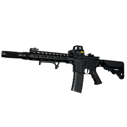 Sporting a full metal gearbox and internal construction with a 551 holographic sight and some awesome accessories to give it an aggressive look when you're out on the field.