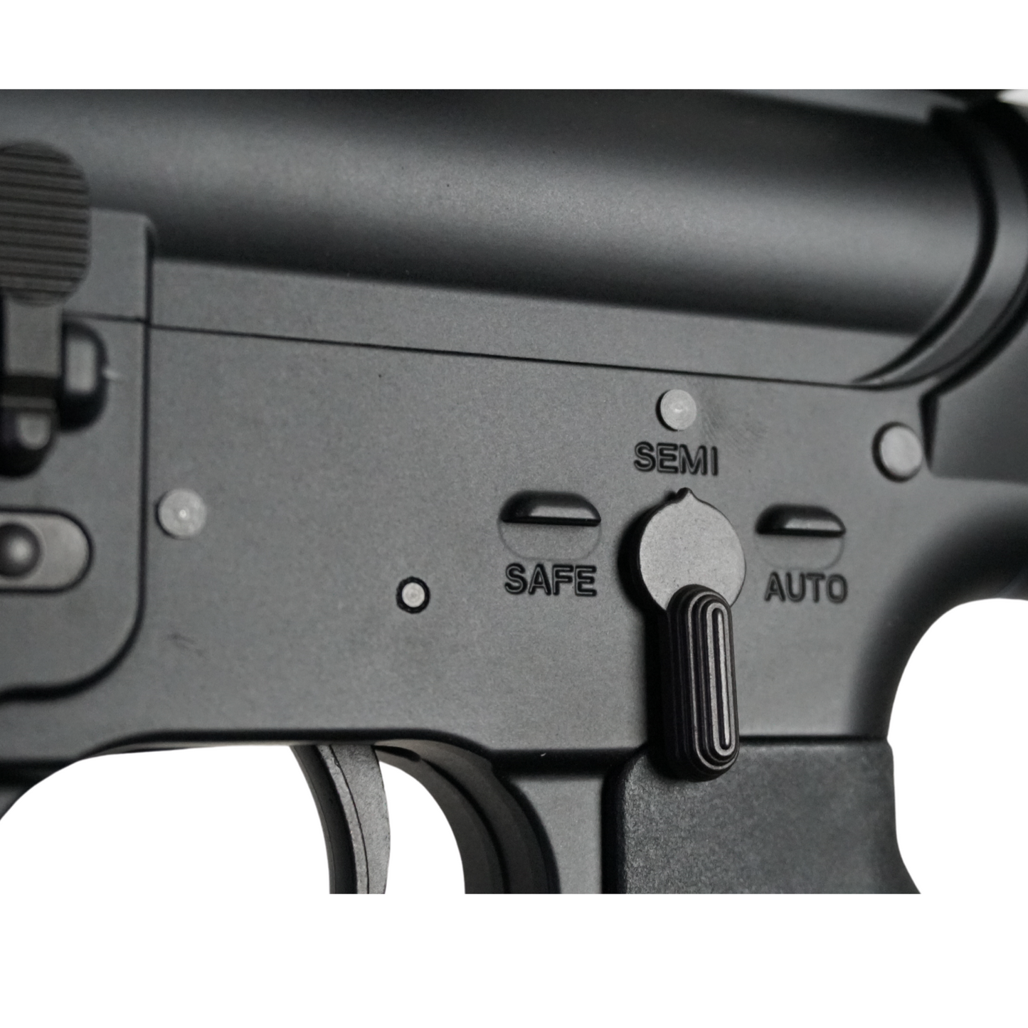 The CYMA M16A4 boasts a truly solid construction partnered with a massive amount of metal components across the blaster. It has a full metal receiver, metal gearbox and a metal barrel assembly just to name a few. The M16 style buttstock is a great addition and gives you the real authentic feel.