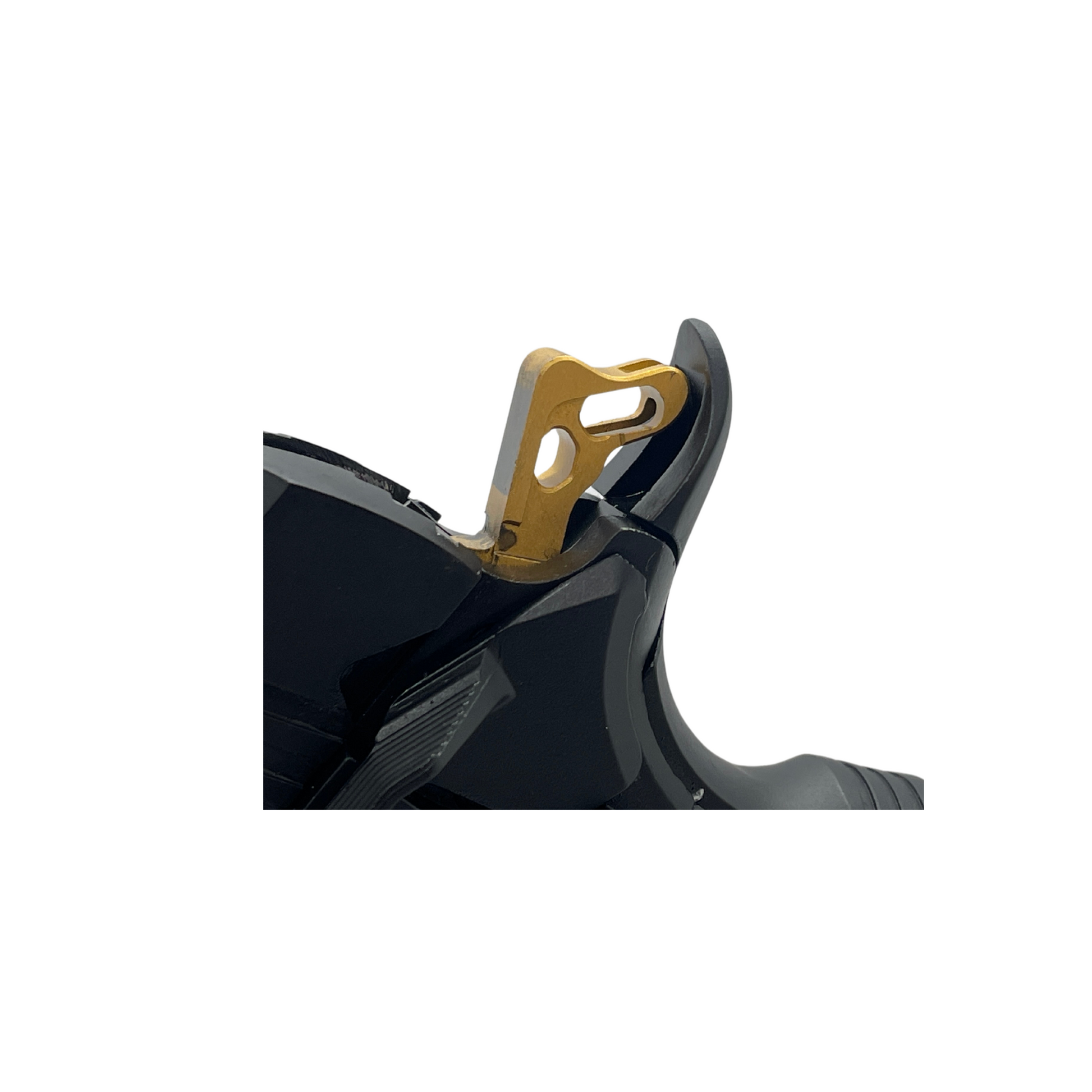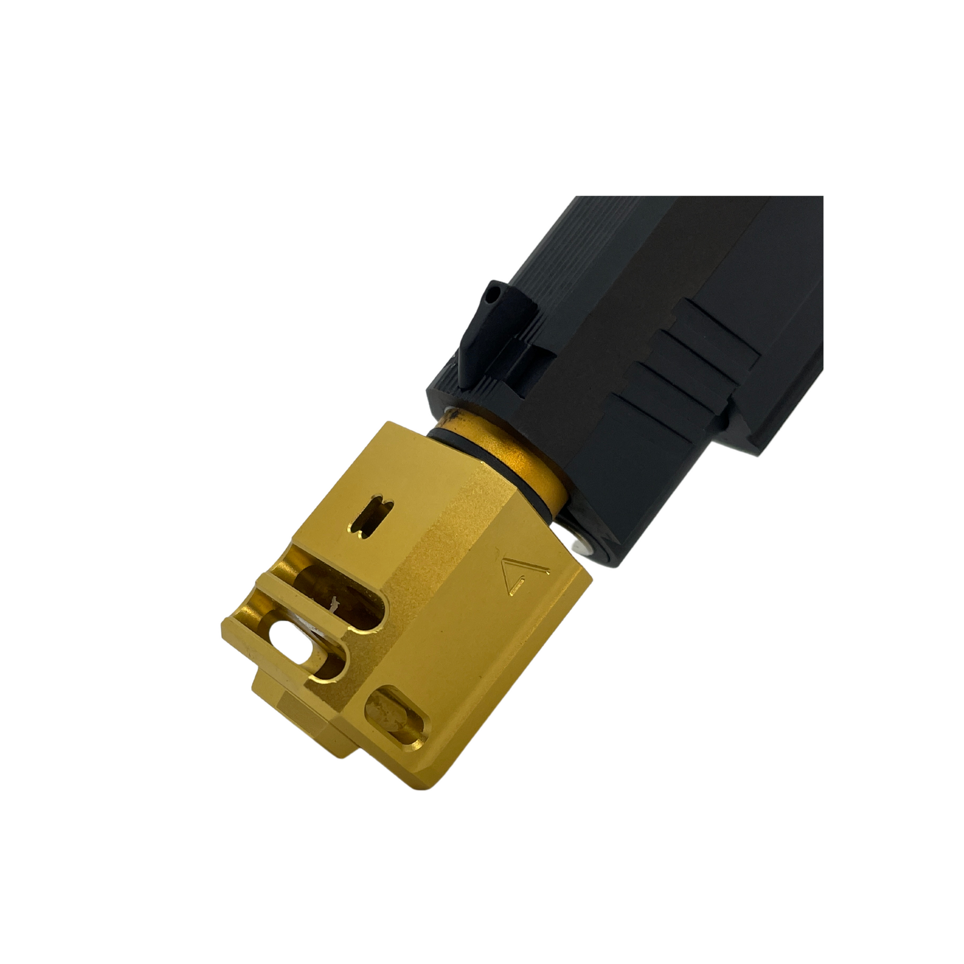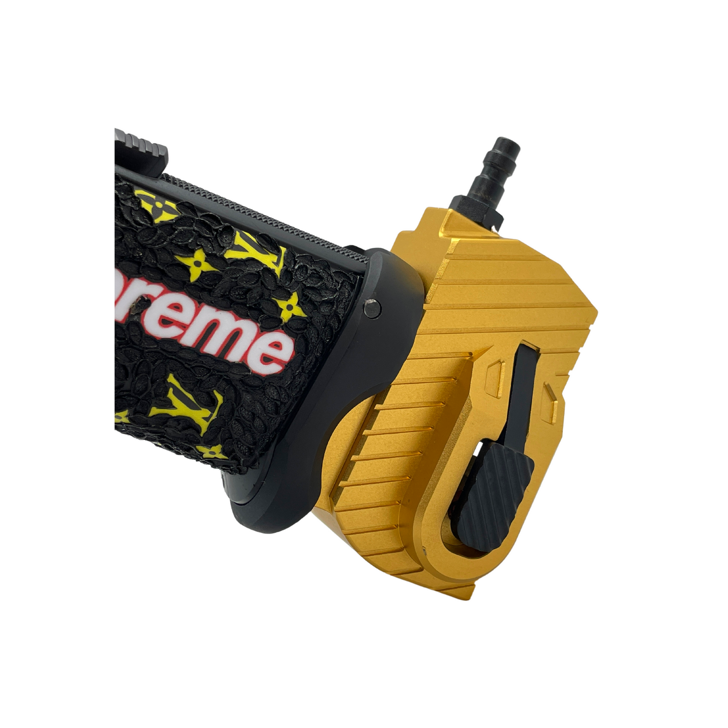 With a custom stippled grip with an "LV" vinyl sticker to give this blaster a stand out feature. Sporting the custom GBU Hi-Capa mag adaptor with a black & Gold colour scheme to match the whole pistol theme and give you the ultimate experience.
