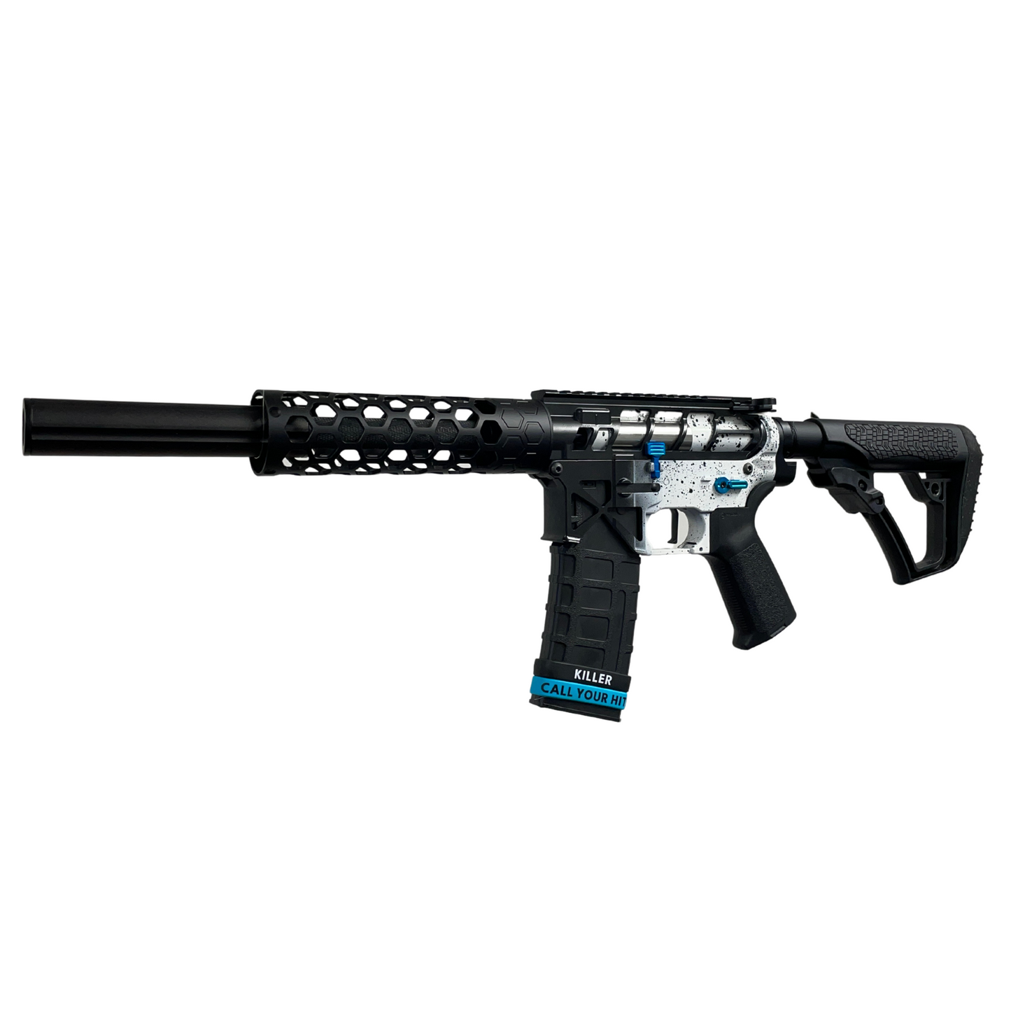 The "Lemonade" Metal M4 is a fresh inspired blaster. It gives both a nice look yet super aggressive performance. This custom has Retro Arms accents which are the leaders in CNC accessories alongside a full competition gearbox build by our very own boy Garner.