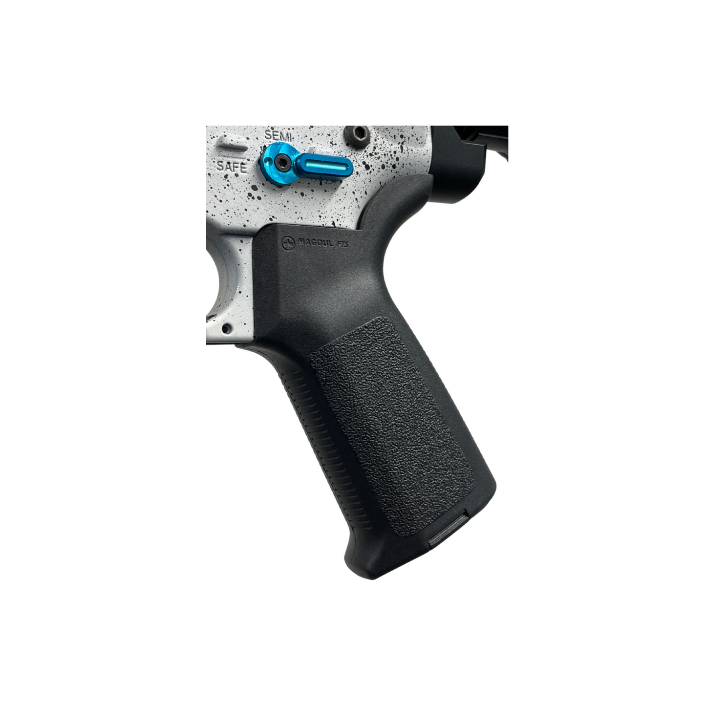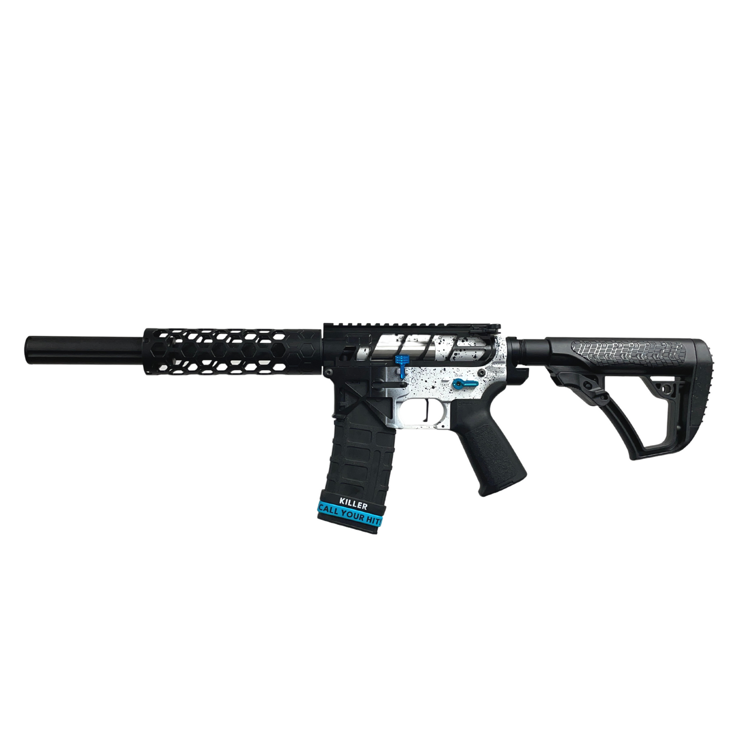 This receiver also has a faded look which is a new style we are beginning to incorporate with our customs and this one came out absolutely perfect. Overall this build is on point from aesthetics to performance to weight and accuracy, you will not find a better combination!