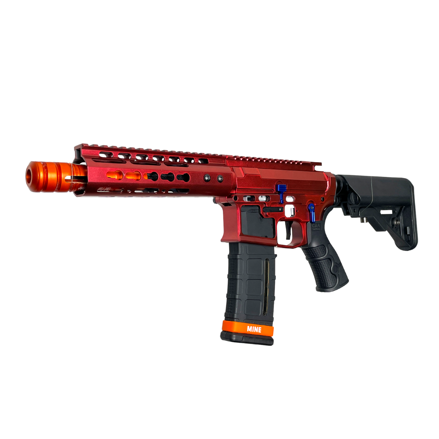 This is the "Retro Sunset" and as you can tell from its name, it is a full Retro Arms custom build from head-to-toe. This build was done by our GBU boys to give the owner of this beautiful blaster the experience of a lifetime. Flawless trigger action mixed with consistent power and accuracy will keep a smile on your face.